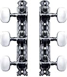 Inexpensive ping guitar machines with double drilled shafts for verical or horizontal mounting. nickel-plated, open gears, and plastic oblong buttons.